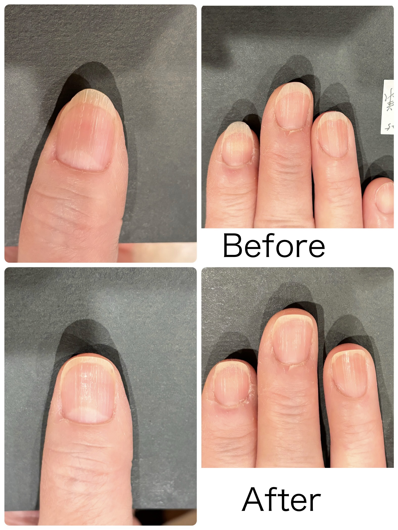 初めてネイルデュースさんに伺いました。乾燥して指先に潤いがなくなっていたことでオイルを探していたらネイルデュースさんにたどり着いきました。サロンにお伺いしたら広くて清潔でとてもリラックスした状態で施術を受けることができました。とてもわかりやすい説明から丁寧にお手入れをしていただいて、見る見るうちに手が柔らかくなり、オイルのつけ方や日常生活でのアドバイスもしていただけて、自爪を大事にしようと思いました。またネイルデュースさんで施術をお願いしたいと思いました。ありがとうございました。
